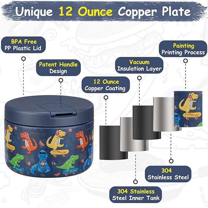 - Upgrade to 12 OZ Capacity: Bigger capacity can hold more food for children. The stainless steel soup thermal bottle is a double wall, with a vacuum in the middle, has good insulation performance, with a wide mouth design that is easier to clean.