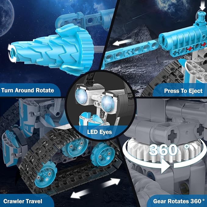 - Versatile(5 in 1) Building Options: The ability to transform the robot into five different styles provides children with diverse building and play experiences. This fosters creativity, encourages exploration, It can Built a robot with LED lights, an off-road vehicle, a garden cart, an earth mover, or a tank.
