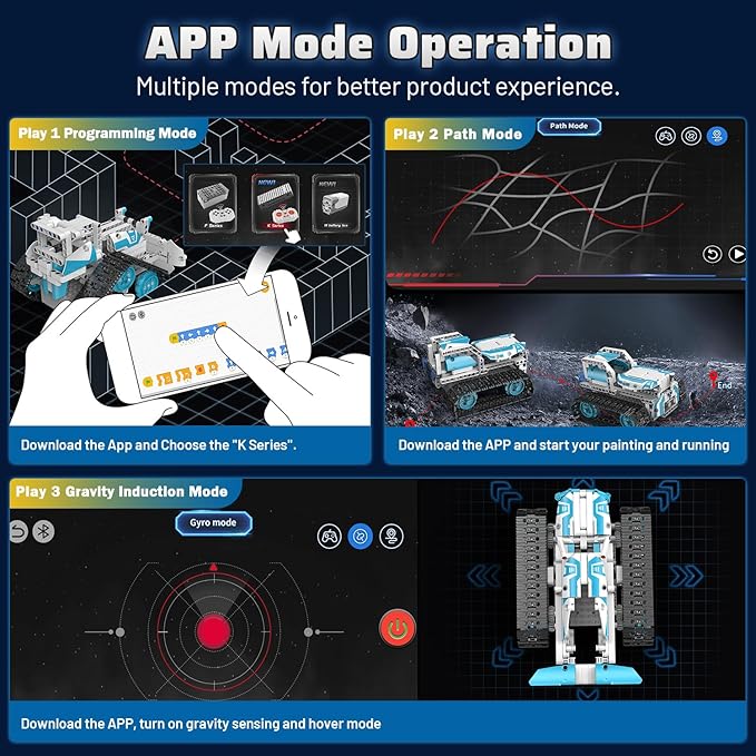 - Remote and App Control: Offering both remote control and app-based control with multiple movement options and 360Β° rotation stunts adds an extra layer of engagement and excitement to play. The inclusion of app control introduces programming concepts, helping children learn and develop valuable skills.(Remote control need 2AAA batteries: Donβt included).