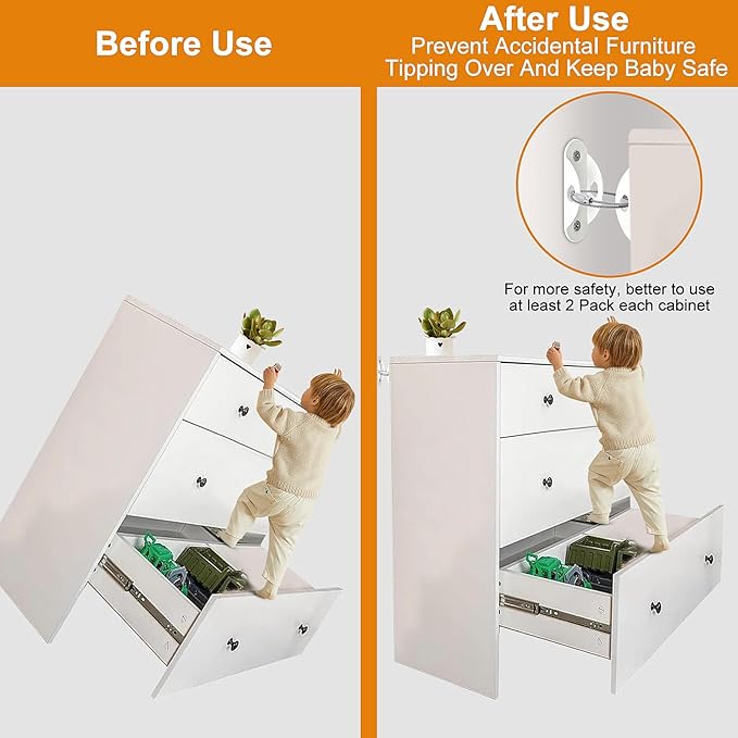 - 【BABY SAFETY】: When toddlers climb on furniture, there is a risk of tipping accidents. The good news is that with the Furniture Anchors, you can help keep your furniture secure and your child safe. Even under pressures of up to 420 pounds, this furniture anchors for baby proofing keeps your furniture upright and secure.