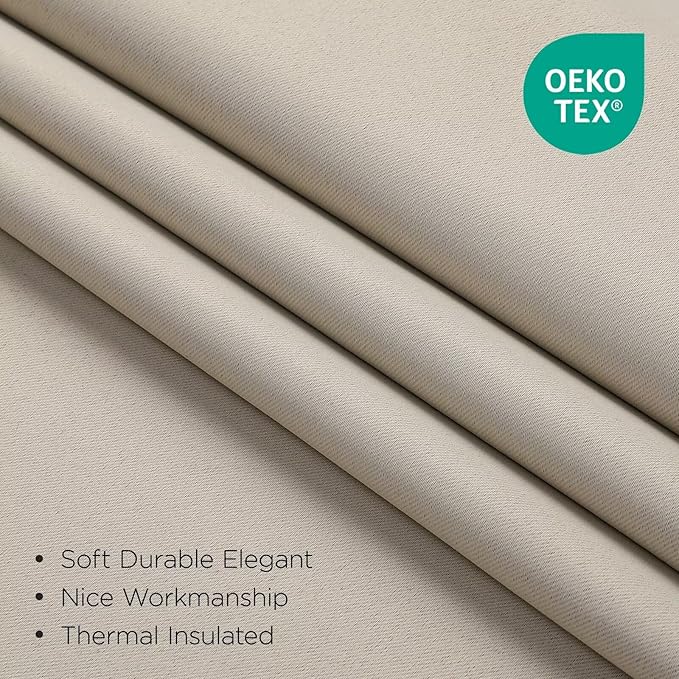 Joydeco 72 Inch Blackout Curtains for Bedroom, Thermal Insulated Black Out Curtains, Room Darkening Drapes for Living Room Window Rod Pocket Back Tab (W37 x L72 Inch, Light Beige)