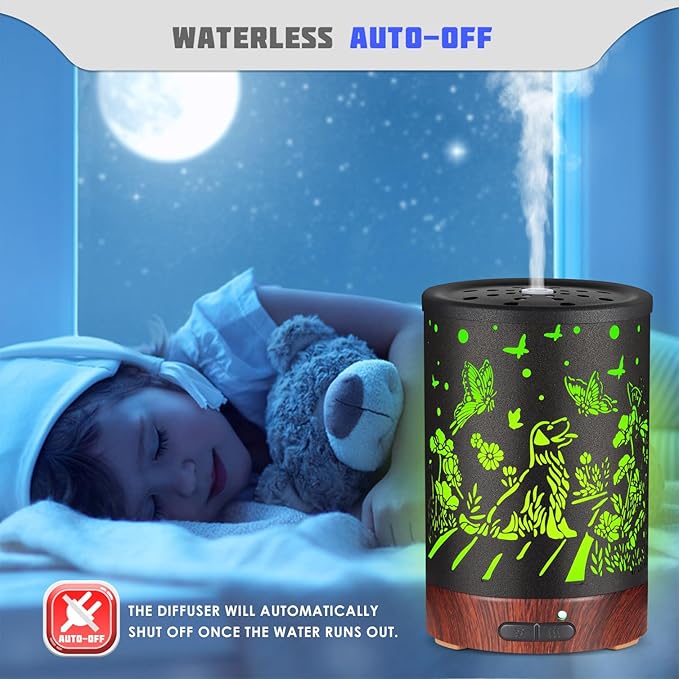Essential Oils Diffuser,Aromatherapy Diffuser,Birthday Gifts for Women Mom Grandma,Metal Cool Mist Humidifier with 7 Colors Lights Waterless Auto Off Air Diffusers (Dogs)…
