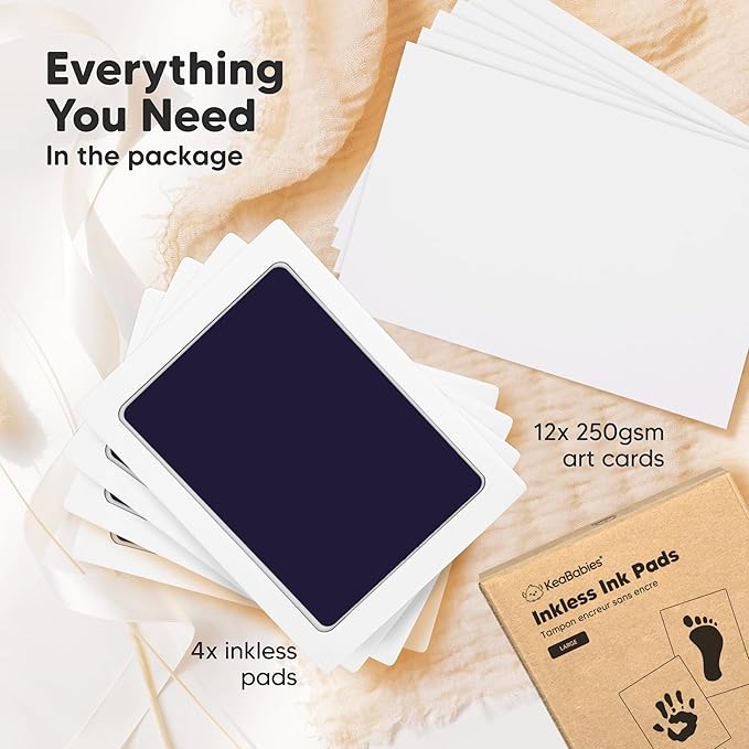- 12 x 250GSM Art Cards - Your little one is perfect; so are their hand and footprint. Use the additional art cards to stamp multiple hand, foot or paw print. Choose the best artwork for your desired displays. Refer to our step-by-step instruction manual on how you can achieve the best results.