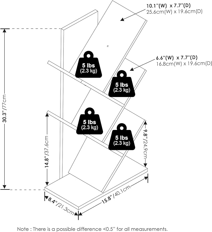 - With versatile functionality, it can serve as a bookshelf, display stand, or organizer. Each shelf hold 5 lbs. Fits Space, Fits Budget.