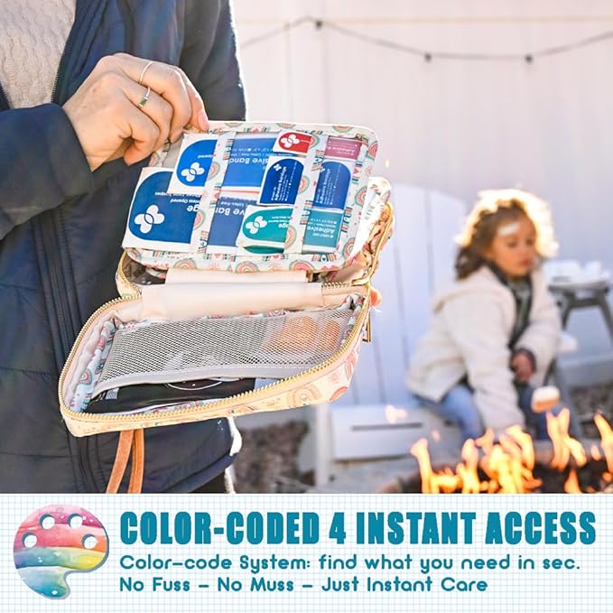 - π Travel-Friendly Organization: Our first aid kit is meticulously designed to ensure quick access during travel emergencies. Our supplies are neatly organized in designated compartments, all in one compact and portable storage bag, allowing for quick grabs during emergencies, making it perfect for parents on the go!