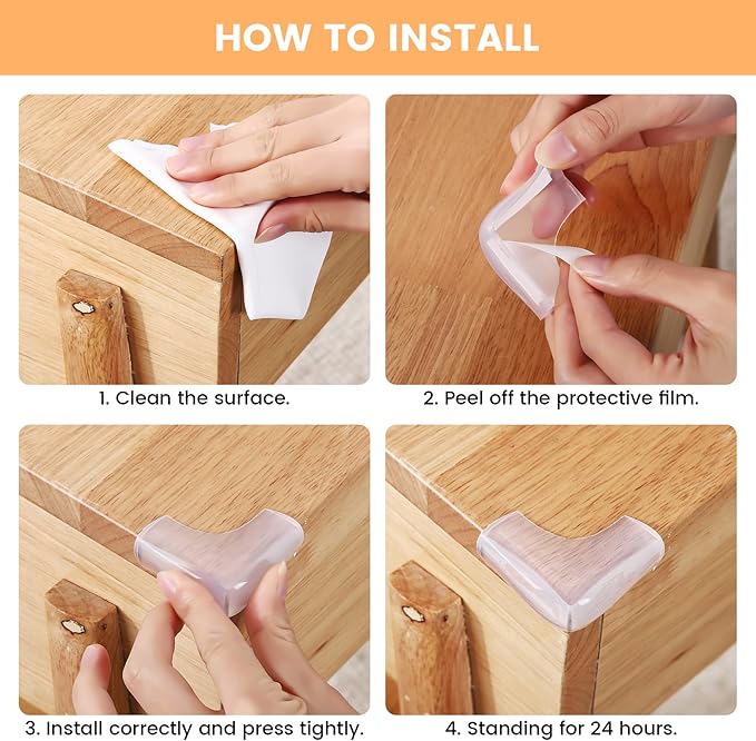 - 【Pre-Taped Adhesive, Easy to Install】 Forget about the annoying process of installation of old version corner protector, our one is pre-adhesive, which will help you save much more time. Just peel the protective stickers, get positioned with the cleaned place, press tightly, and let stand for 24 hours. The whole installation won't take more than 1 minute.