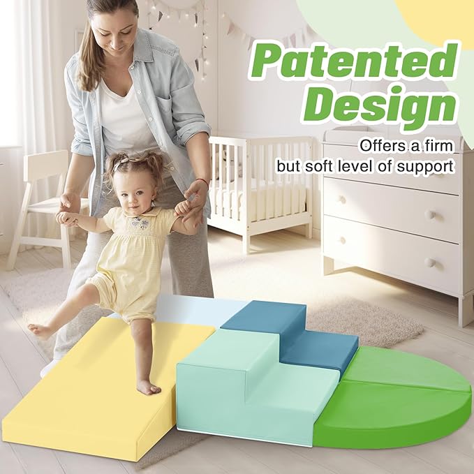 - High-quality Safety Materials: Crafted from environmentally friendly soft cotton and soft PU leather, ensuring safety and durability for your little one. Our toddler climbing toy 6-Piece Set includes 2 stairs, 2 half-moon, 1 square and 1 slide. Non-toxic, odorless, and easy to clean, this foam climbing toy provides peace of mind for parents. Our climbing sets have a unique patented design that your child is sure to love.