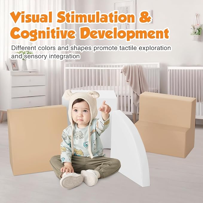 - Premium Climbing Experience: Toddler climbing toys features a variety of shapes for endless fun and imaginative play. Perfect for toddlers ages 3+, kids can stack and swap shapes as they climb, slide and enjoy the excitement of the toy. Baby climbing blocks consists of 1 coffee stairs, 1 coffee slide, 1 white half-moon, and 1 white square