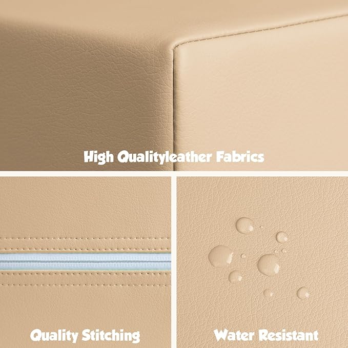 4-Piece Soft PU Leather Toddlers Climbing Toys, Baby Foam Climbing Blocks for Toddlers 3, Foam Play Gym Climbing Structures, Indoor Climb and Crawl Activity Play Set (White and Coffee)