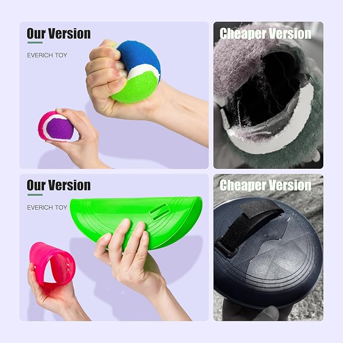 • 【Softer and High-quality Ball Set】Old Version's balls are very hard without elasticity, which is hard for kids to catch it. Our balls are much stronger and softer yet with better stickiness, so that kids can catch the balls easily and comes with comfortable feel, kids won’t lose their fun as they can keep catching the ball. Always have lots of fun for your little ones, even to family reunion game.