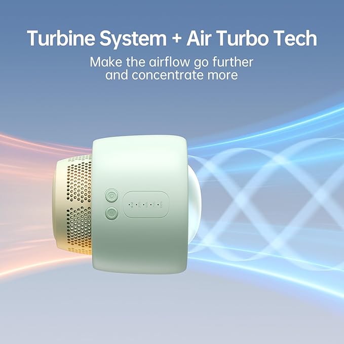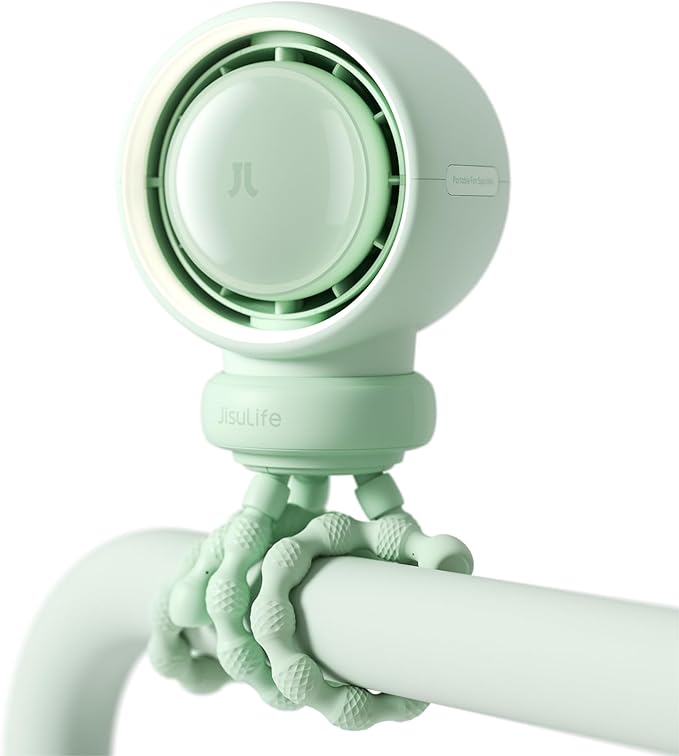JISULIFE Stroller Fan Baby Large, Safe Bladeless for Crib, Desk, 4000mAh Battery Rechargeable Portable Cooling Fan with Air Turbo Tech, Night Light, Food-Grade Gift for Mom/Dad/Friend - Green