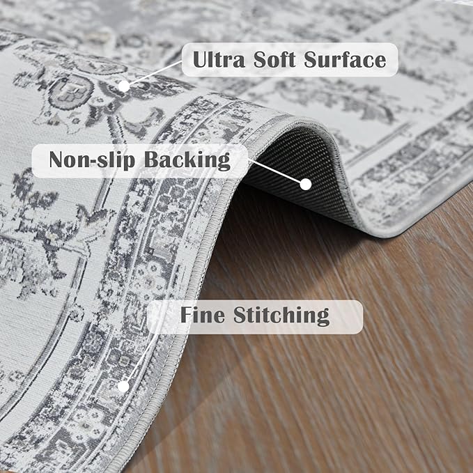 jinchan Runner Rug 3x10-2pcs Kitchen Washable Vintage Hallway Rug Floral Print Floor Cover Indoor Thin Retro Mat Accent for Bathroom Laundry Room Bedroom Office Farmhouse (Double,Grey)