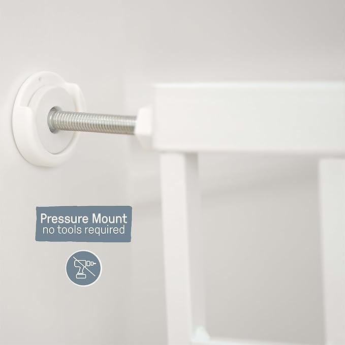 - Fits in doorways or hallways with easy no-drill pressure mount system to help prevent damage; fits at top or bottom of stairs, on walls or flat banisters, with included hardware kit (required for stair use)