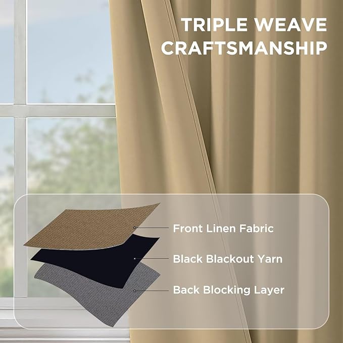 Joydeco 72 Inch Blackout Curtains for Bedroom, Thermal Insulated Black Out Curtains, Room Darkening Drapes for Living Room Window Rod Pocket Back Tab (W52 x L72 Inch, Beige)