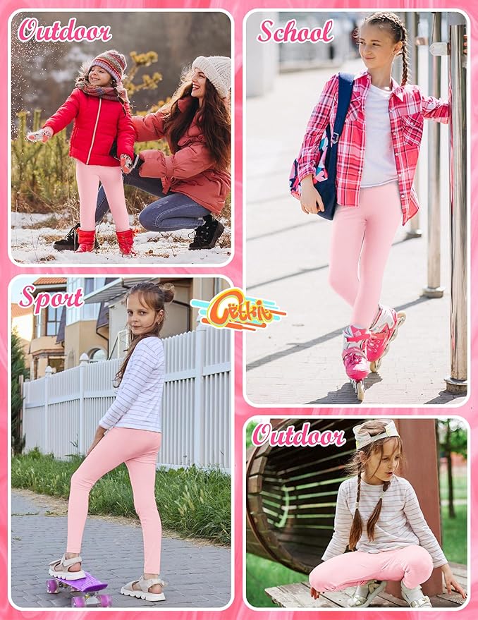 - 【High-Quality Toddler Leggings】 These girls' leggings are made of 94% polyester and 6% spandex. The fabric is stretchy, ultra-soft, and breathable, making these girls' legging very comfortable and flexible. All leggings are made from premium four-way stretch fabric, with an elastic band sewn into the waistband, which lies flat on the waist for a comfortable and good fit.