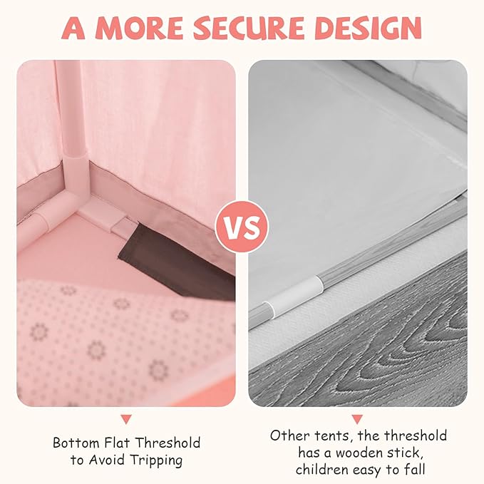 - ✨ANTI-TRIP DESIGN:Our children's tent is different from other tents in that the door is designed to be invisible threshold. Tent bottom close to the ground, children in and out of the tent will not trip or fall, very safe and reliable. Generally, the threshold of the tent door is a stick or a round pipe. When the children get in and out, they are likely to get wrestling.