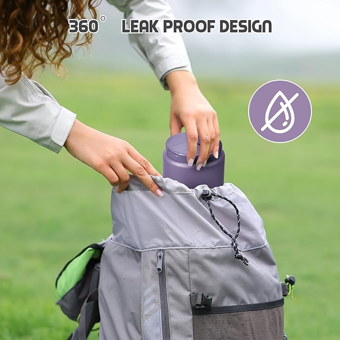 - 100% Leak Proof :Our food thermo comes with a thick silicone gasket. It is full sealed. So you can toss it in your bag or insulation bag without worrying about spills. Wide mouth design are also very easy to clean.