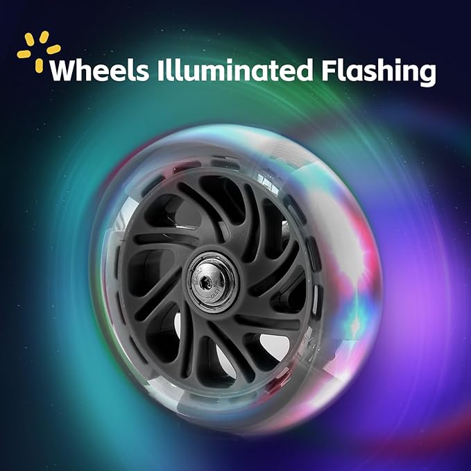 - Light up scooter: 4 PU LED light-up wheels with ABEC-7 bearings give more smooth and speed glide, bright and attractive design make children safe and funny in dark.