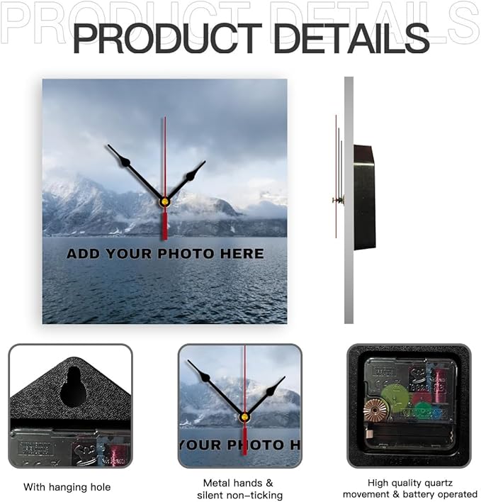 - ⏰⏰Personalized pictures clocks:Please click the“customize now“button at upper,upload your customized photo and add text.Stretch photo to fill the entire printing area.Submit high definition images for better print results.