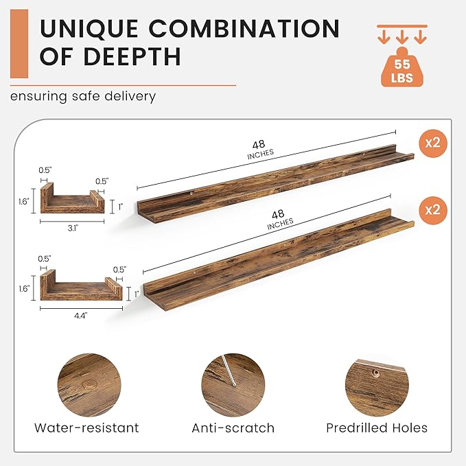 - 【Picture Ledge Perfect for Display】FLYJOE picture ledge shelves for wall turn your walls into a stunning photo gallery! These spacious shelves are ideal for showcasing a variety of picture frames in one secure place. With a thoughtful protective lip, you can display everything from photos to collectibles without worrying about them falling off