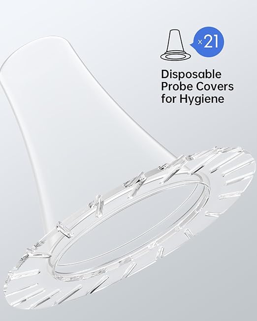 - Non-Contact More Hygienic - No contact with the probe during temperature measurement, with 21 replaceable disposable probe covers, replace the ear covers before each temperature measurement to prevent mutual infection among family members. Equipped with an upgraded storage case, the ear thermometer and replacement earmuffs can be stored together to isolate them from dust, making them more convenient and hygienic.
