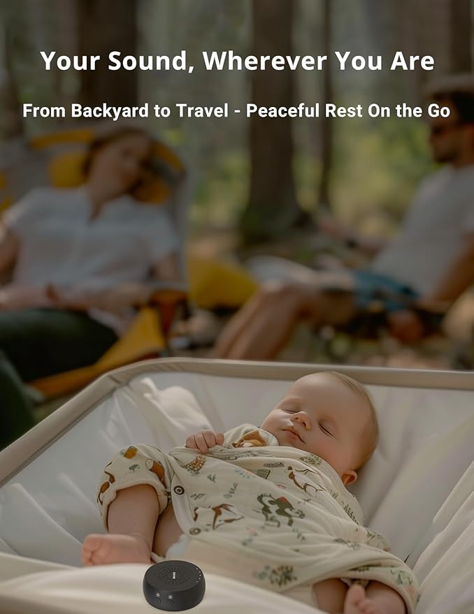 - Portable Sound Machine for Travel: Weighs only 2.88โฏoz; fits into pockets or bags; built-in fabric loop attaches to strollers, backpacks, or nightstands; compact design for bedrooms, nurseries, or travel sleep support