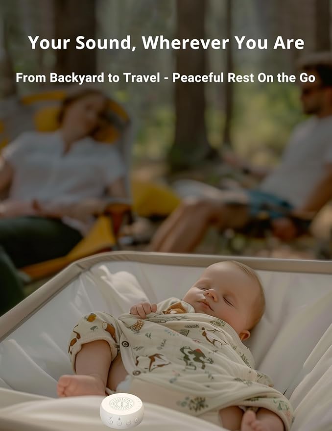 - Portable Sound Machine for Travel: Weighs only 2.88โฏoz; fits into pockets or bags; built-in fabric loop attaches to strollers, backpacks, or nightstands; compact design for bedrooms, nurseries, or travel sleep support