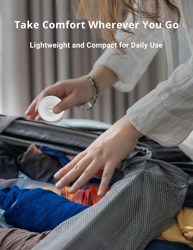 FOXFINE White Noise Machine, Portable Sound Machine with 36 Soothing Sounds, Focused Light, Timer, for Sleeping, Baby, Adults, Home & Travel, White