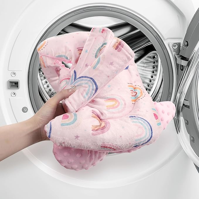Infant Car Seat Insert, Car Seat Head Support Baby Girls Boys, Soft & Reversible Newborn Carseat Insert Cushion with 2 Strap Covers, for Stroller, Swing, Bouncer (Pink Rainbow)