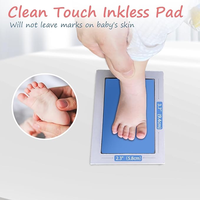 - [Perfect Gifts]: This baby ink hand and footprint kit measures 5.0"x3.2" and has an ink window of 3.7"x2.3".Ideal for newborn baby hand and footprint, use the baby inkless ink pad, you will have personalized baby footprint keepsake, it's not only for baby shower gifts but also for pet birthday gifts.