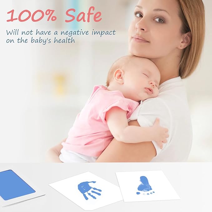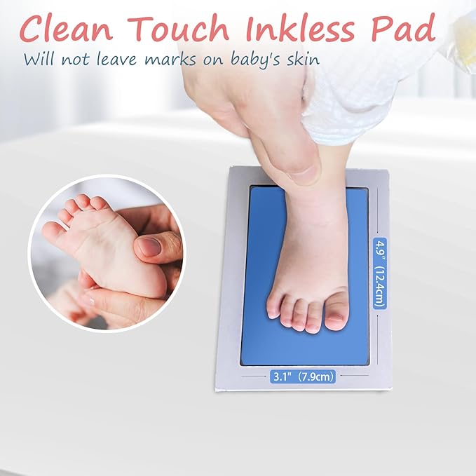 • [No Mess,No Residue]:This inkless baby hand and footprint kit is clean touch and no residue. Use this baby hand and footprint kit,you will get clear, complete, non-blurred baby handprint.This mess free ink pad for babies is perfect as baby shower gifts for newborn baby.