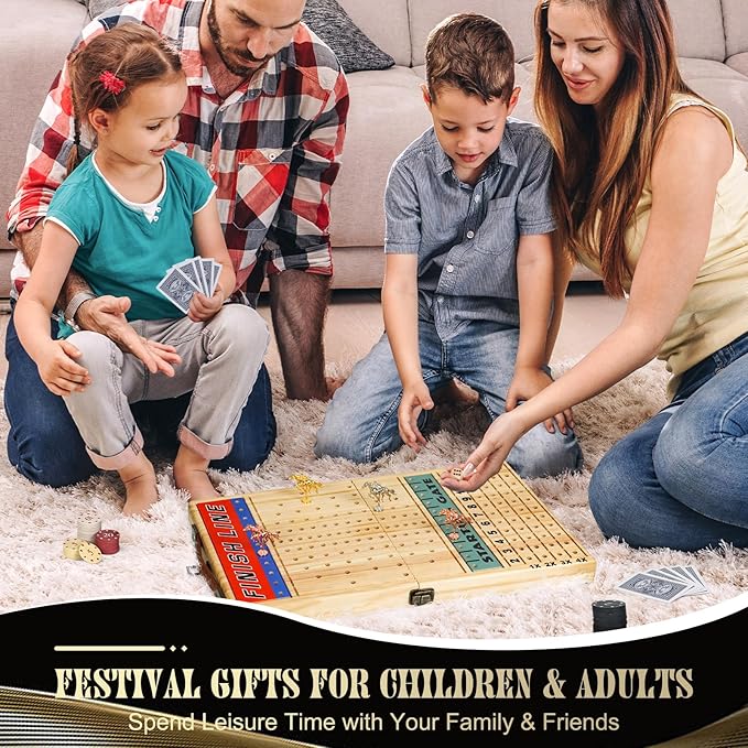 - UNIQUE FOLDABLE CASE DESIGN: Our horse race game board adult features a folding box design with thickened wooden boards and a hollow box in the center. Built-in foam and vintage latch design keeps all accessories neatly in the storage box . The leather carrying handles are easy to carry out to your friend's house, outdoor.