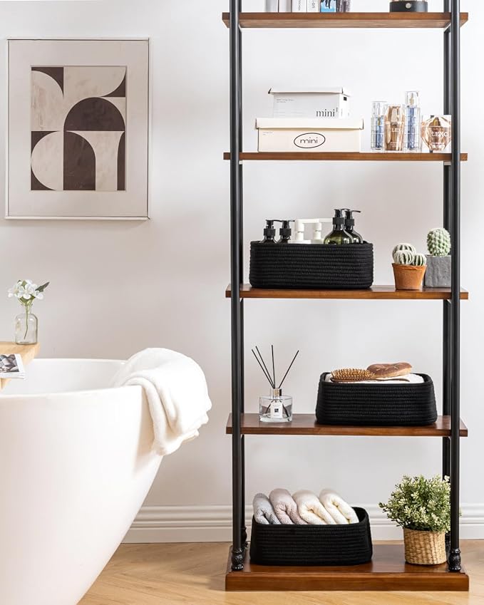 - [ Elegantly Designed to Match Any DΓ©cor ] Our small rope basket creates a minimalist appearance, and it adds a touch of warmth and texture to any room. The classic solid color design ensures seamless integration with your existing aesthetics, complementing any decoration. Perfect as decorative storage baskets for shelves, cabinets, and any open display space, making them a stylish and practical addition to any decor, enhancing the overall aesthetics of your room