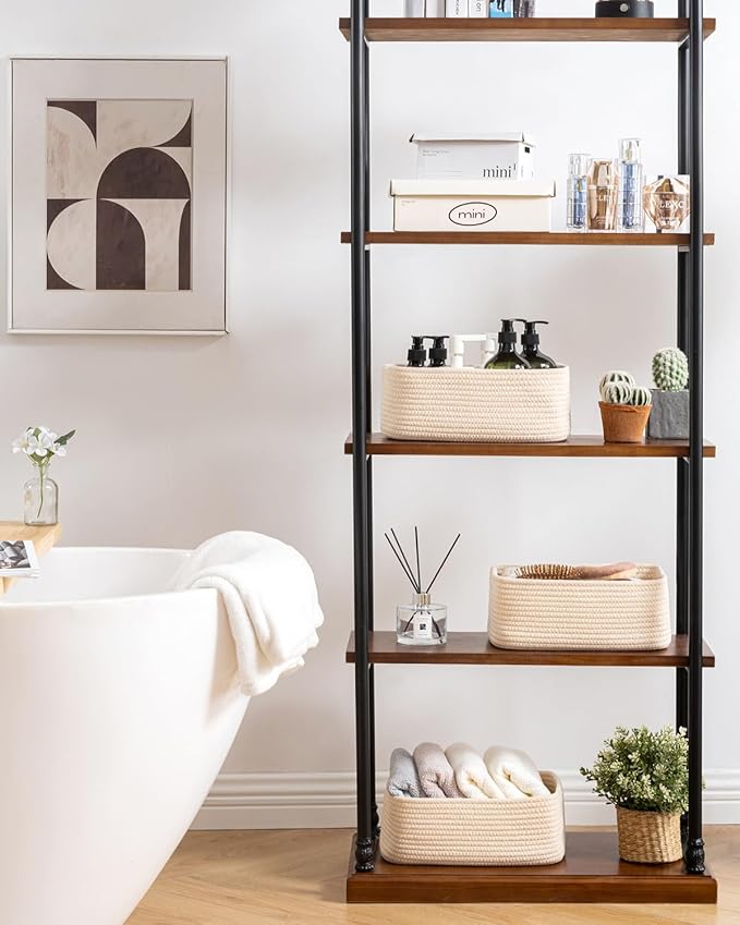 - [ Elegantly Designed to Match Any DΓ©cor ] Our small rope basket creates a minimalist appearance, and it adds a touch of warmth and texture to any room. The classic solid color design ensures seamless integration with your existing aesthetics, complementing any decoration. Perfect as decorative storage baskets for shelves, cabinets, and any open display space, making them a stylish and practical addition to any decor, enhancing the overall aesthetics of your room