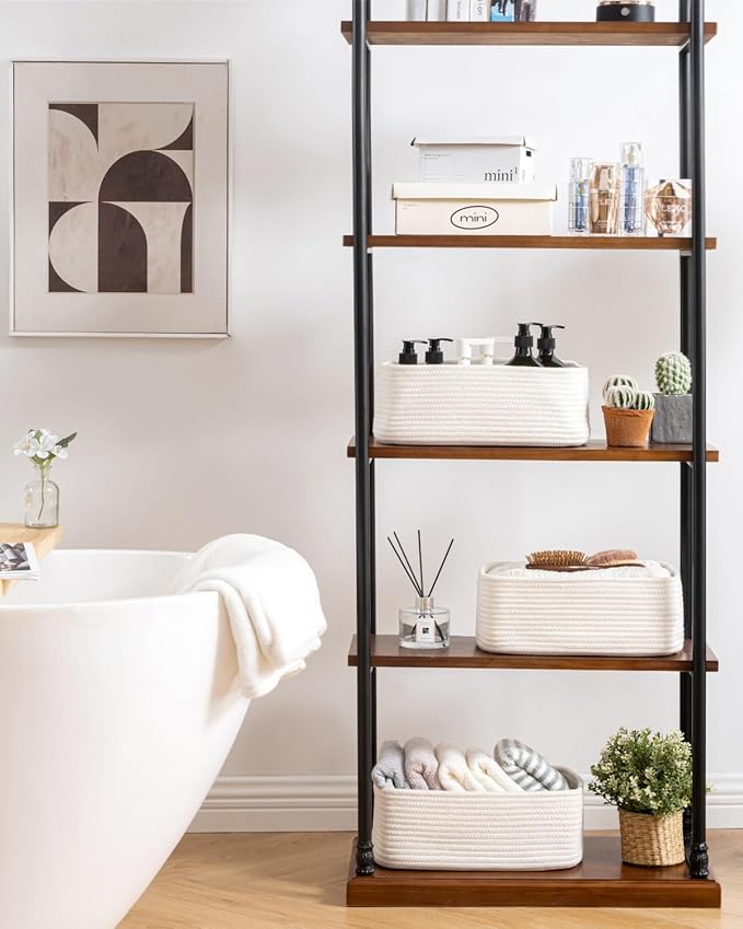 - [ Elegantly Designed to Match Any DΓ©cor ] Our small rope basket creates a minimalist appearance, and it adds a touch of warmth and texture to any room. The classic solid color design ensures seamless integration with your existing aesthetics, complementing any decoration. Perfect as decorative storage baskets for shelves, cabinets, and any open display space, making them a stylish and practical addition to any decor, enhancing the overall aesthetics of your room