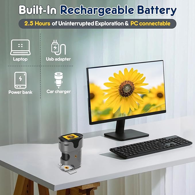 - Rechargeable: our digital microscope built-in with large capacity rechargeable battery. can be used continuously for 2.5 hours after fully charged, the charging cable included.