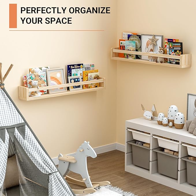 - [Safety First] - Our nursery bookshelves are thoughtfully designed with R-shaped edges to add an extra layer of safety. Each shelf features a protective wooden bar to prevent books and toys from dropping. We are committed to keeping all family members safe