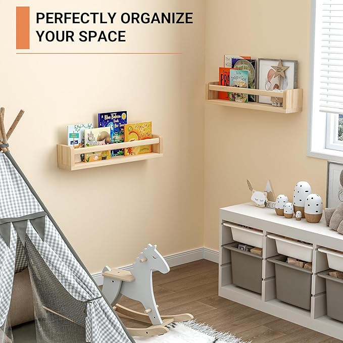 - [Ample Storage Space] - Measuring 16.5 inches, these nursery shelves offer ample room for organizing children's books, toys, photos, and other small items. They encourage a love for reading while keeping spaces tidy. With 0.6β thicken panels, each bookshelf can hold up to 30 LBS