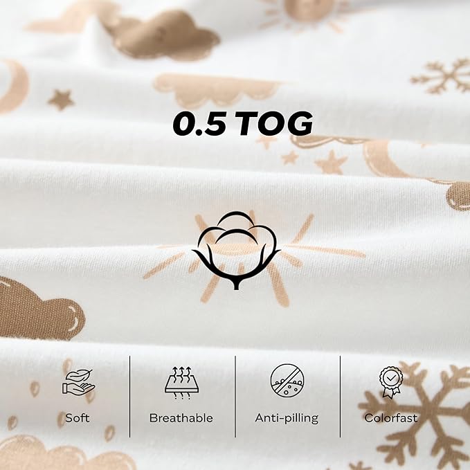 • 0.5 TOG - This baby sleep bag perfect for 23 to 26 Β°C or 74 to 78 Β°F,We recommend a heavier TOG during cooler months and a lighter one during warmer months, provide the most comfortable temperature for your baby.