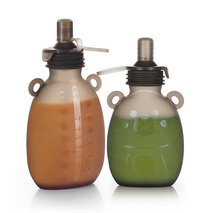 - ππππππππ πππππ πππ:Compared to traditional plastic pouches, our reusable pouches for toddlers offer four key advantages: an X-cut variable flow mouthpiece, a leakproof lid, soft silicone that's gentle on little mouths, and it's environmentally non-polluting. Additionally, distinctly presented as 2 Pack (6oz+9oz) for diverse needs.