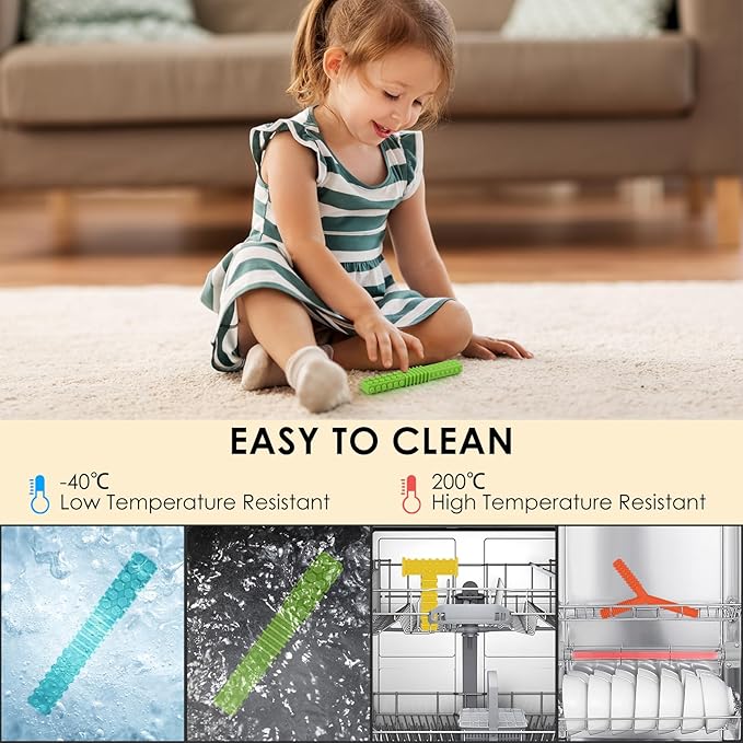 - EASY TO CLEAN: The toddler teether very easy to clean, just wash the sensory chewing toys with soapy water, or wash it with dishwasher. Our sensory chew stick can be sterilized by boiling water, steam sterilizer and sunlight. -40β to 200β Temperature resistant, we suggest cleaning it before first use and after each use