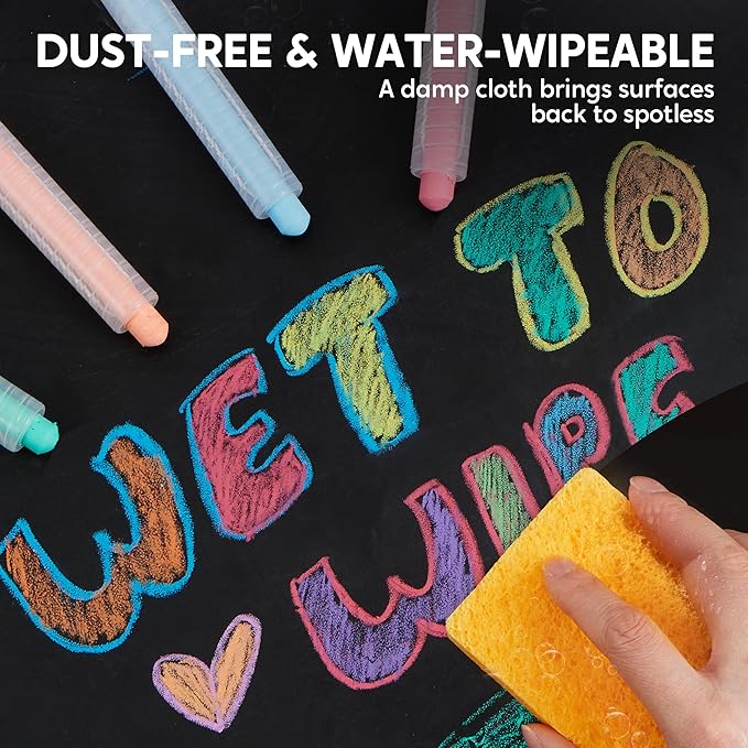 - Dustless Crayon: Designed with a dust-free pen holder to help prevent dust. Ensuring cleaner hands and surfaces while you're creating your masterpieces. Great for school, summer activities, summer camps, recreation centers, and creative fun on paper, whiteboards and glasses. This set is the good tool for mess-free art and imaginative play.