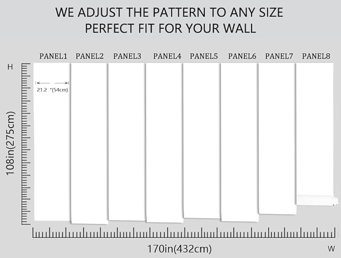 - Before purchasing, you need to measure the size you need, our mural is 108 inches high and 170 inches wide, in order to facilitate long-distance transportation, we divide the width of the mural into six pieces of 21.2 inches each, with a numerical serial number underneath each piece for easy installation!