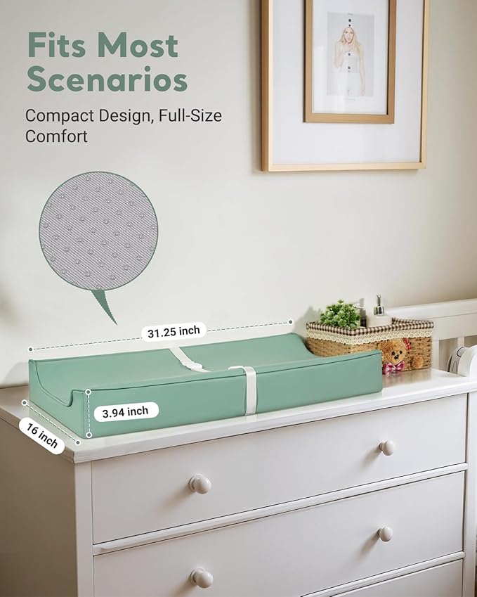 - Large Size & Easy Maintenance: Generous 31”x16” size accommodates newborns to toddlers. Replaceable cover and waterproof core ensure hassle-free cleaning for busy parents