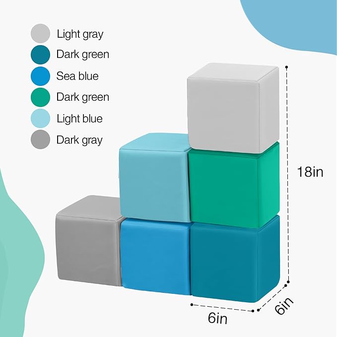 - Foam Blocks for Early Learning: Our 6-piece toddler blocks of foam cubes covered in durable, waterproof PU leather features vibrant colors designed to grab kidsโ attention and foster early color recognition, creating a vibrant toddler zone to explore and learn through stacking, building, and imaginative adventures