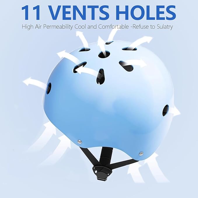 - 🏂️【LIGHTWEIGHT ADJUSTABLE HELMT】Kids bike helmet only weighs 280g, Children helmets have adjustable crank adjustment dial and strap ,and changing the length of the chin strap, maximize the best fit and comfortable wearing, perfectly for boys and girls 2-3-5-8-14 years old. Toddler helmet size: 18'-22',one kids helmet set can be used for a few years.
