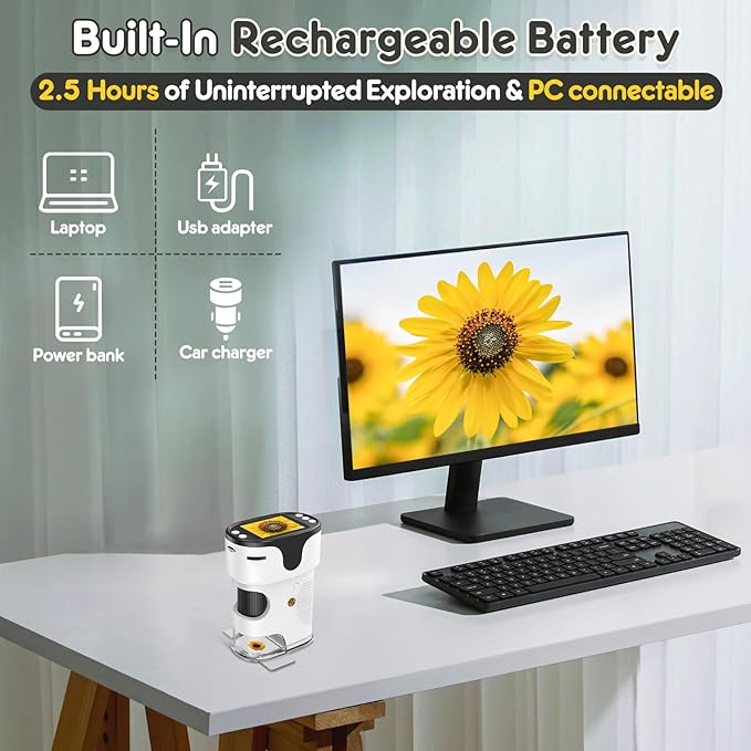 - Rechargeable: our digital microscope built-in with large capacity rechargeable battery. can be used continuously for 2.5 hours after fully charged, the charging cable included.