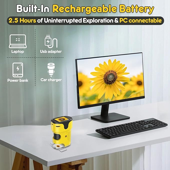 - Rechargeable: our digital microscope built-in with large capacity rechargeable battery. can be used continuously for 2.5 hours after fully charged, the charging cable included.