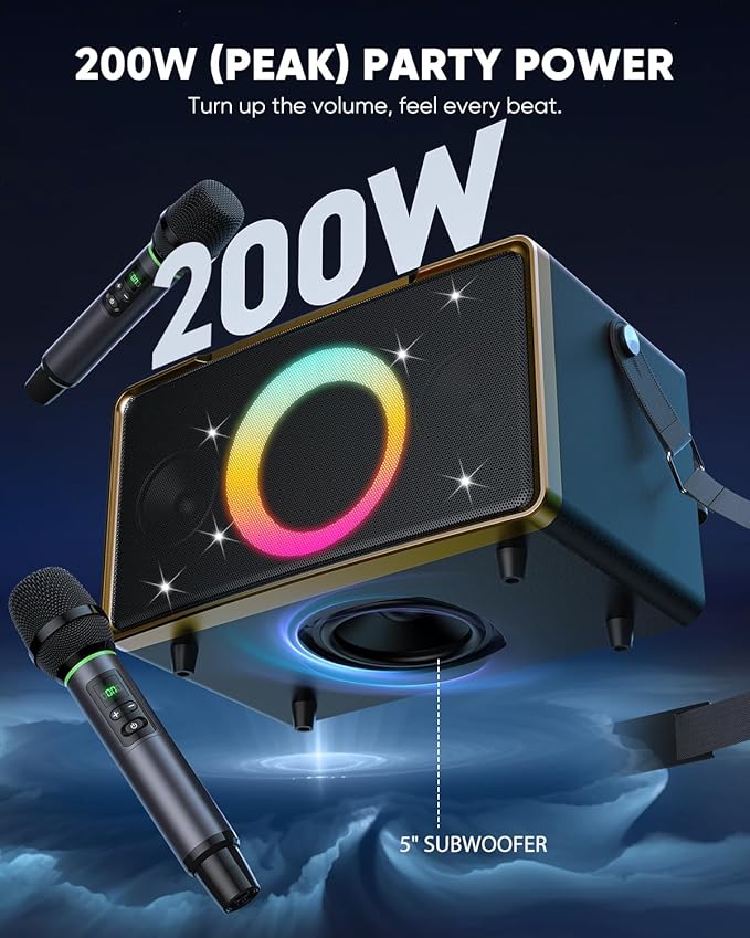 - 200W OUTPUT & 5" SUBWOOFER: GFEEN party Bluetooth speaker delivers powerful 200W peak power and a 5-inch subwoofer, delivering an immersive and powerful bass experience for music enthusiasts of hip-hop, rock, classical, electronic, and beyond. Creates a concert-like audio experience.