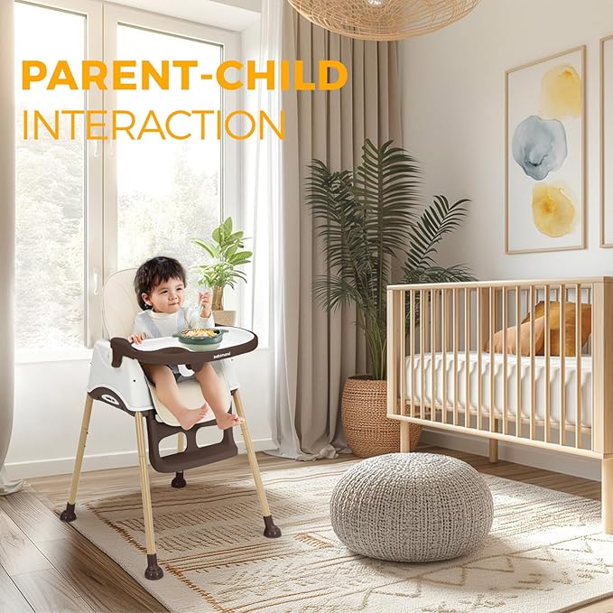 - Multiple Safety Protections: Sturdy steel tubes and a golden triangle design prevent tipping. The adjustable 5 point harness high chair ensures your babyβs safety, making this highchair a top choice for parents.